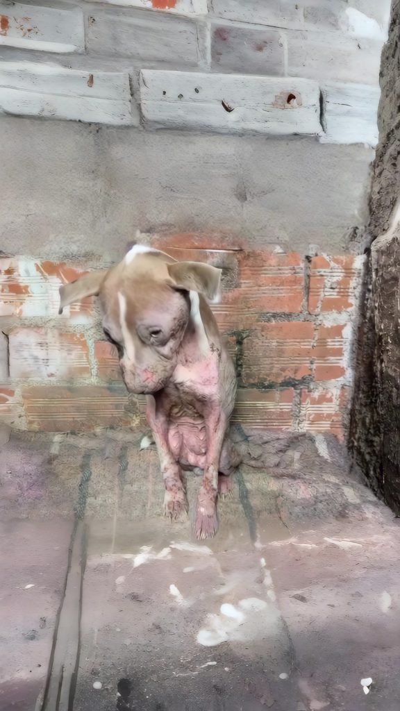 He lay still beside a concrete wall, his body thin to the point of fragility. Hunger had reshaped him — hollowed his frame, dulled his coat, and slowed every movement until even lifting his head felt like too much. The streets had taken everything they could from him. All that remained was endurance.